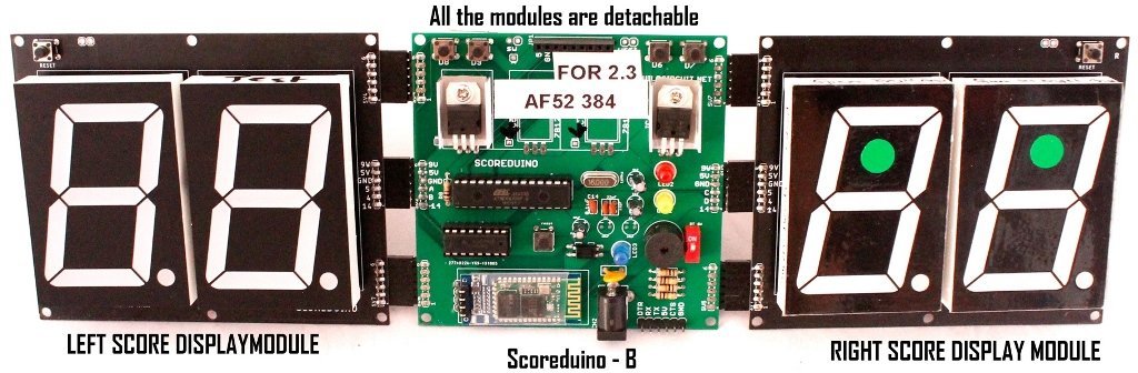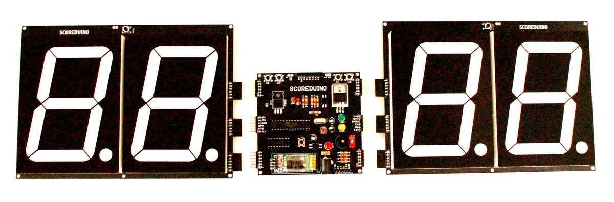 You can send a specific score on each display using the SCORE4 app. There are up and down buttons on the app to increase and decrease the scores respectively. There are also two tactile switches on the SCOREDUINO-B board to increase or decrease the scores on both sided displays.