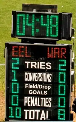 Displays Tries, Penalties, Field/Drop Goals, Conversions, and Total Score