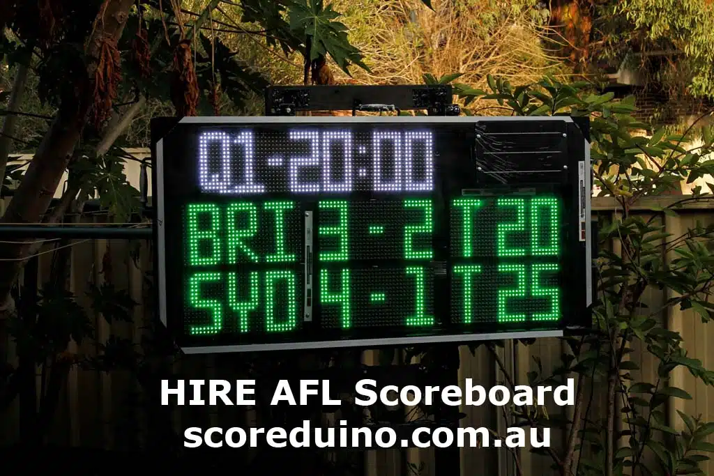 Looking to hire a professional digital scoreboard for your upcoming AFL tournament? Introducing the AFL Scoreboard based on the powerful SCOREDUINO platform – the perfect solution for community, school, and college-level matches.